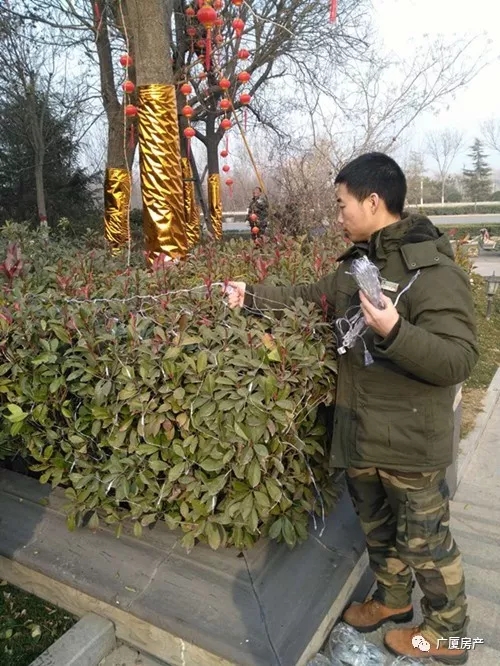 2019年的春節(jié)即將來臨,這兩天在運(yùn)城的大街小巷的樹上都掛上了紅紅的燈籠和彩燈,年味是越來越濃。這不,在金海灣小區(qū)里維修部的工人師傅們也在小區(qū)的樹上、冬青上掛上了紅紅的燈籠和彩燈,燈籠火紅火紅的,映襯得藍(lán)天格外藍(lán);晚上的燈籠更是照亮了人們回家的路,彩燈一閃一閃的十分有節(jié)日的氣氛。這么漂亮又富有詩情畫意的小區(qū),我們得感謝那些為我們創(chuàng)造美好環(huán)境的人們,是他們一個(gè)一個(gè)的把燈籠掛起來了,把彩燈一條線一條線的串聯(lián)起來,為我們創(chuàng)造了一個(gè)五彩繽紛的節(jié)日氣氛。