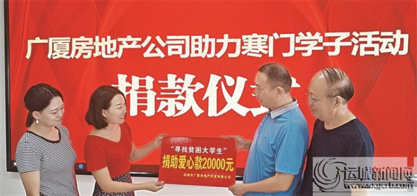 晨報(bào)訊(記者 李婉玉 馮楊婕)8月17日上午,愛心企業(yè)運(yùn)城廣廈房地產(chǎn)有限公司再次回報(bào)社會(huì),為晨報(bào)發(fā)起的“尋找貧困大學(xué)生”愛心助學(xué)行動(dòng)捐款兩萬(wàn)元。